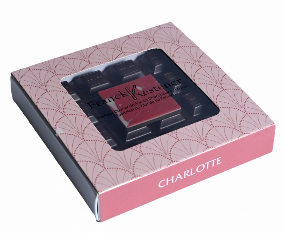 Ingrédients : sucre, beurre de cacao, fraise, pâte de cacao, crème de lait pasteurisée, lait entier en poudre, sirop de glucose, tréhalose: source de glucose, lait écrémé en poudre, beurre, sorbitol, sucre inverti, pectine de fruit, émulsifiant: lécithine de soja, eau, acide citrique, dextrose, arôme naturel de vanille, Gousses de Vanille de Tahiti